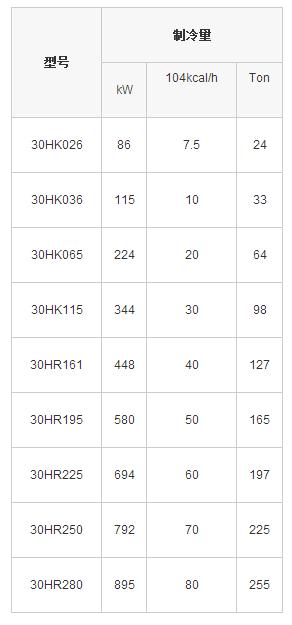 30H - 活塞式冷水機組 型號: 30H 制冷量: 86 - 895(kW) 主要性能: (1)機組技術成熟,性能可靠 (2)采用開利06E王牌壓縮機 (3)雙制冷劑回路多機頭設計,調節(jié)靈活,系統(tǒng)可靠 (4)具有壓縮機運轉時間均衡功能 (5)采用高效傳熱管換熱器 (7)安裝快捷,操作簡單 技術參數(shù):...